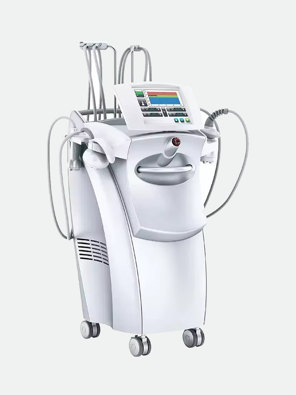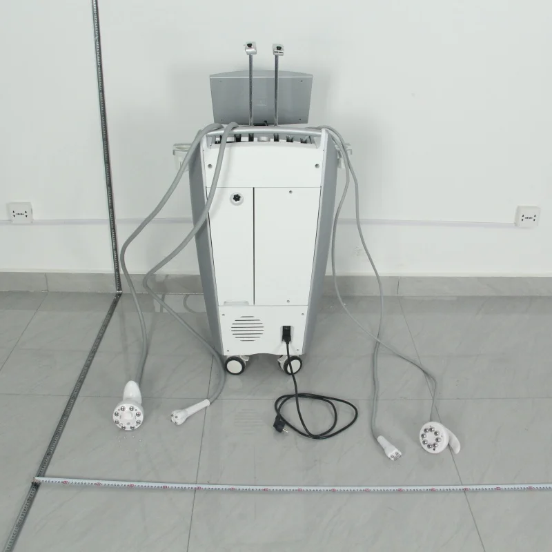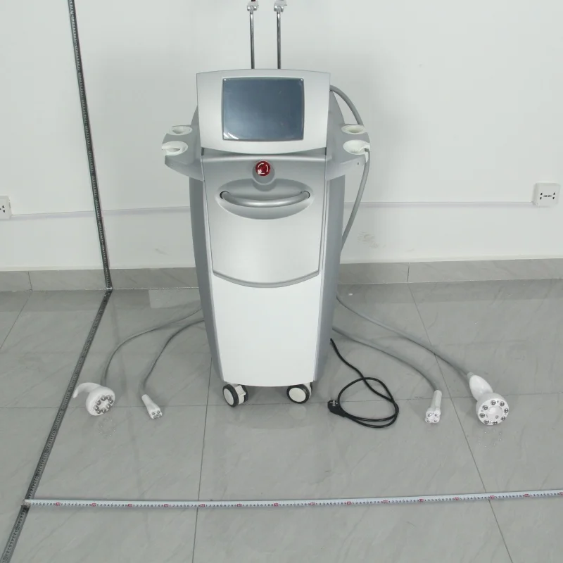 All-in-one body sculpting device using radio frequency and cavitation to reduce fat and smooth skin.