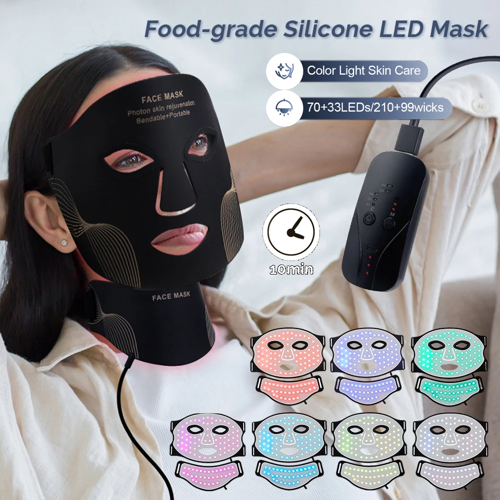 Lightweight and wireless LED mask with face and neck coverage, designed for anti-aging, acne care, and overall skin renewal.